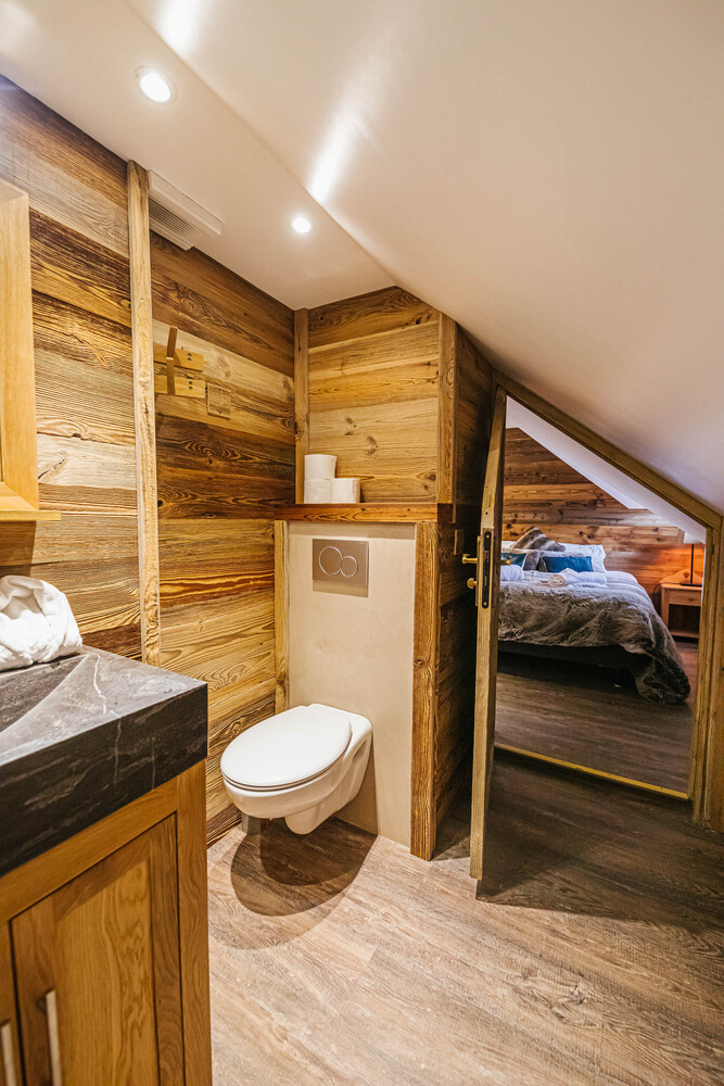 There is ample space to relax in the large lounge, equipped with a central log fire that just invites cosy evenings with wine and games; spacious bedrooms with large comfortable beds; a generous kitchen with all the appliances you’ll need; and the best space of all perhaps – the white mountains outside which showcase sunset views from the balconies.